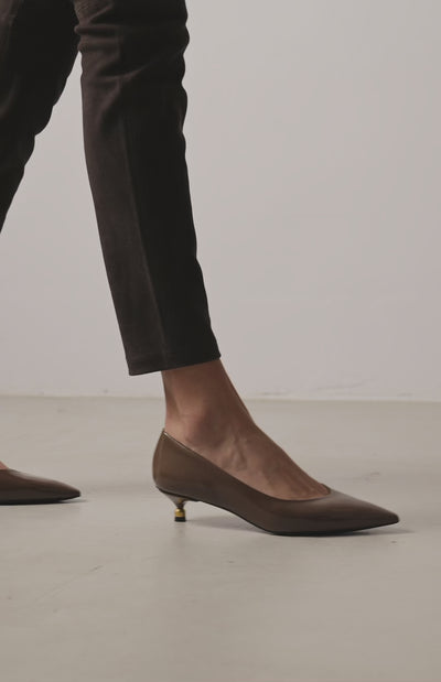 Olive-colored pumps. Crafted entirely from high-quality, vegetable-tanned leather, using natural plant extracts. This is an eco-friendly choice without compromising quality.