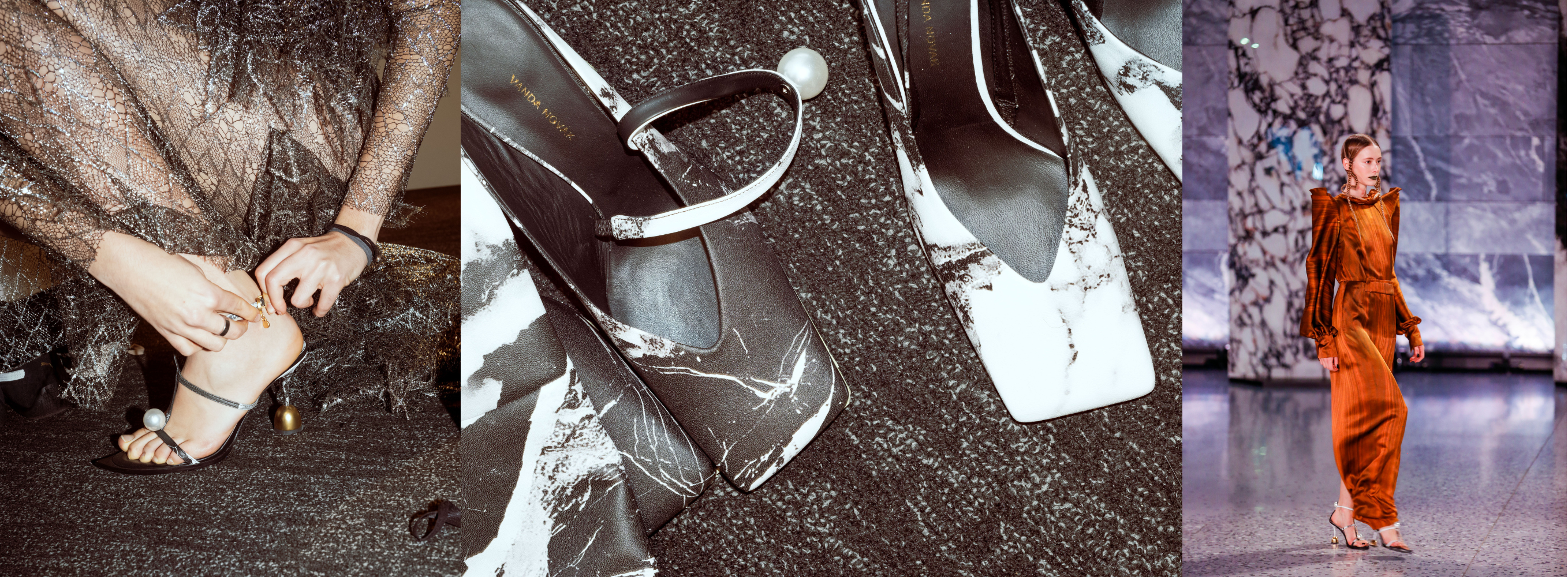 Wysokie, niemalże brawurowe kozaki z marmurowej skóry, czółenka i sandały zdobione przeskalowanymi perłami i charakterystyczne, masywne obcasy o łukowatej krzywiźnie. Tak pokrótce można opisać, to co podczas wieczornego pokazu w Muzeum Historii Polski zobaczyli widzowie tego niezwykłego spektaklu.